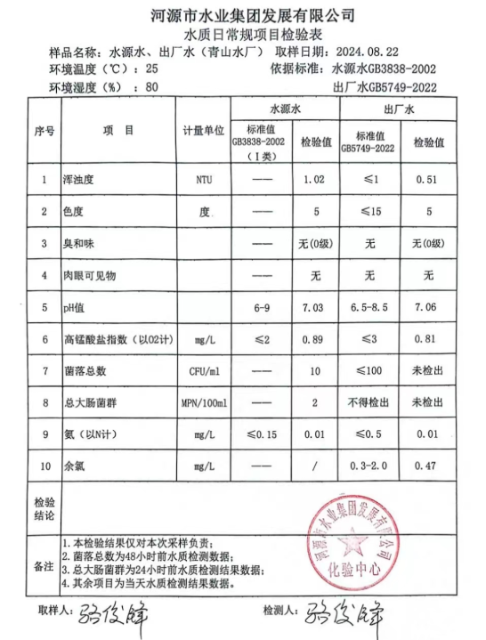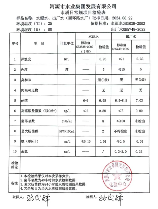 2024年8月22日水質(zhì)檢驗(yàn)報(bào)告