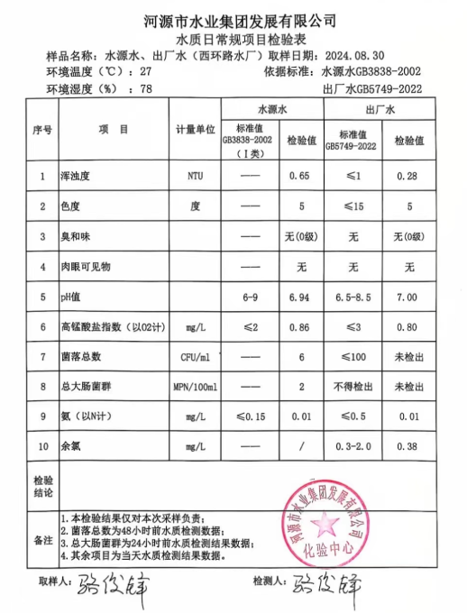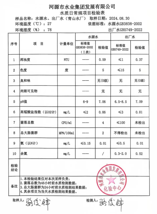 2024年8月30日水質(zhì)檢驗報告