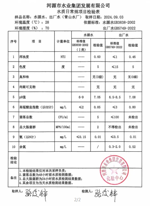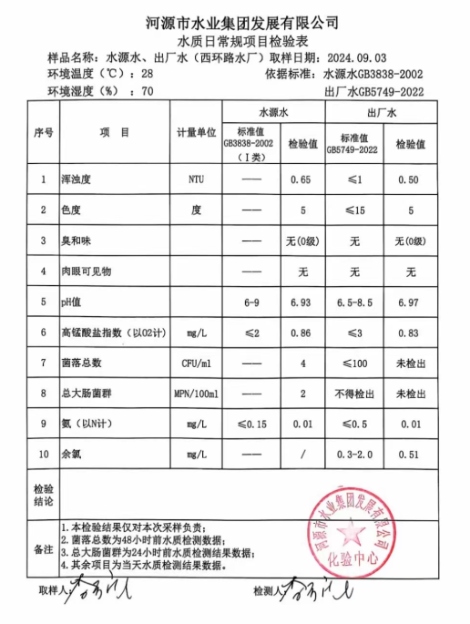2024年9月3日水質(zhì)檢驗(yàn)報(bào)告