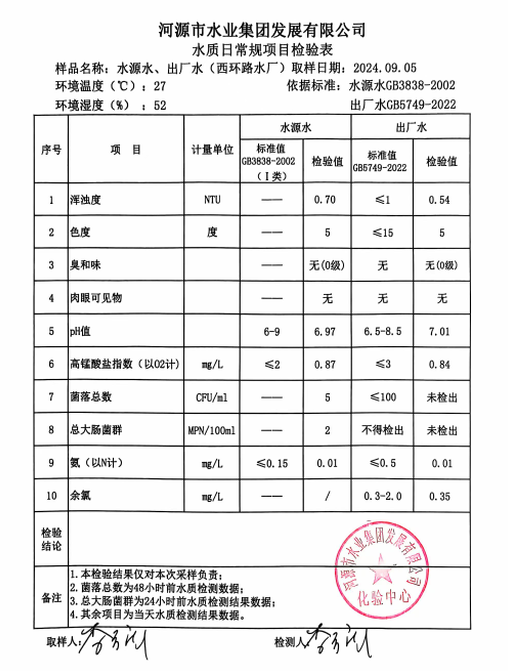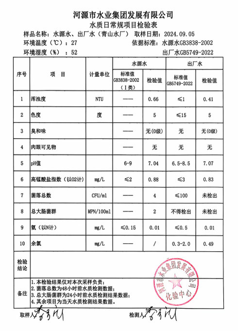 2024年9月5日水質(zhì)檢驗(yàn)報(bào)告