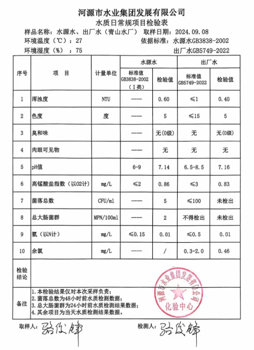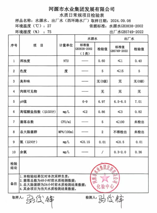 2024年9月8日水質檢驗報告