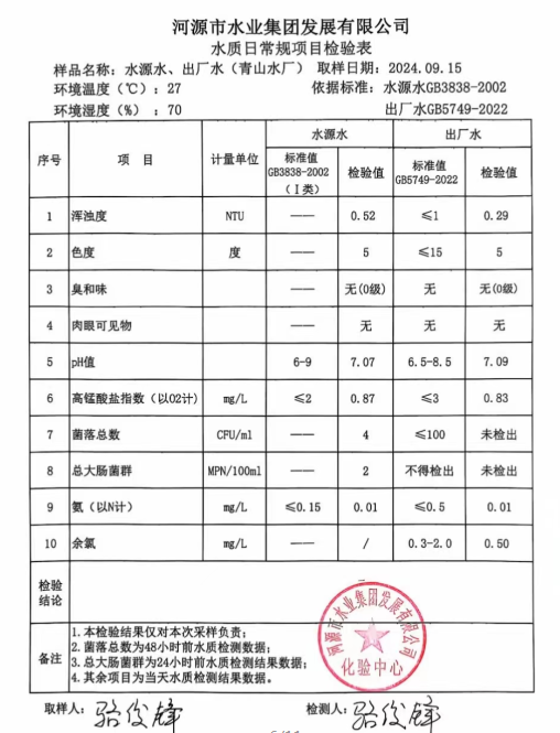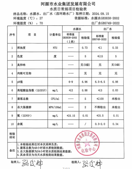 2024年9月15日水質(zhì)檢驗(yàn)報(bào)告