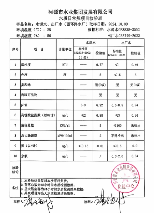 2024年10月9日水質(zhì)檢驗(yàn)報(bào)告