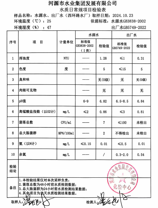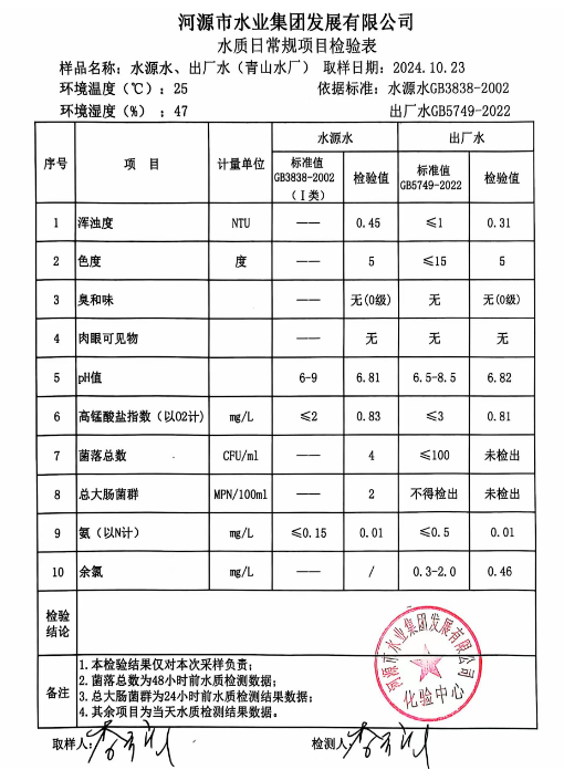 2024年10月23日水質(zhì)檢驗報告