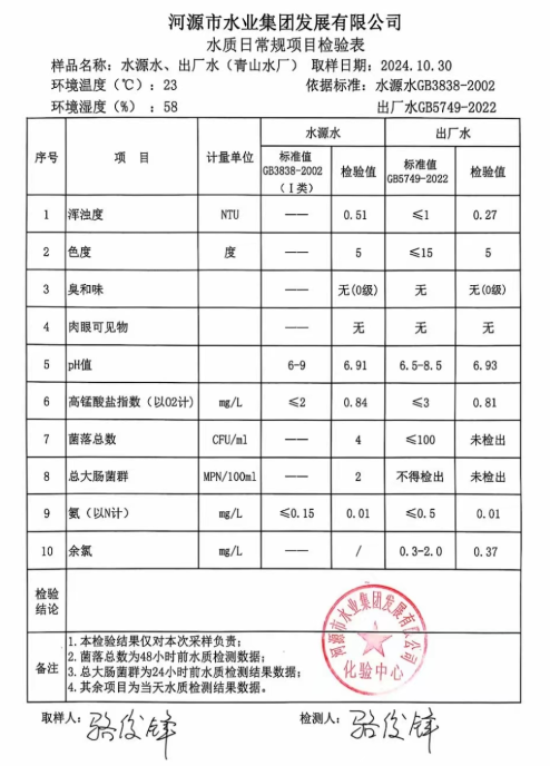 2024年10月30日水質(zhì)檢驗報告